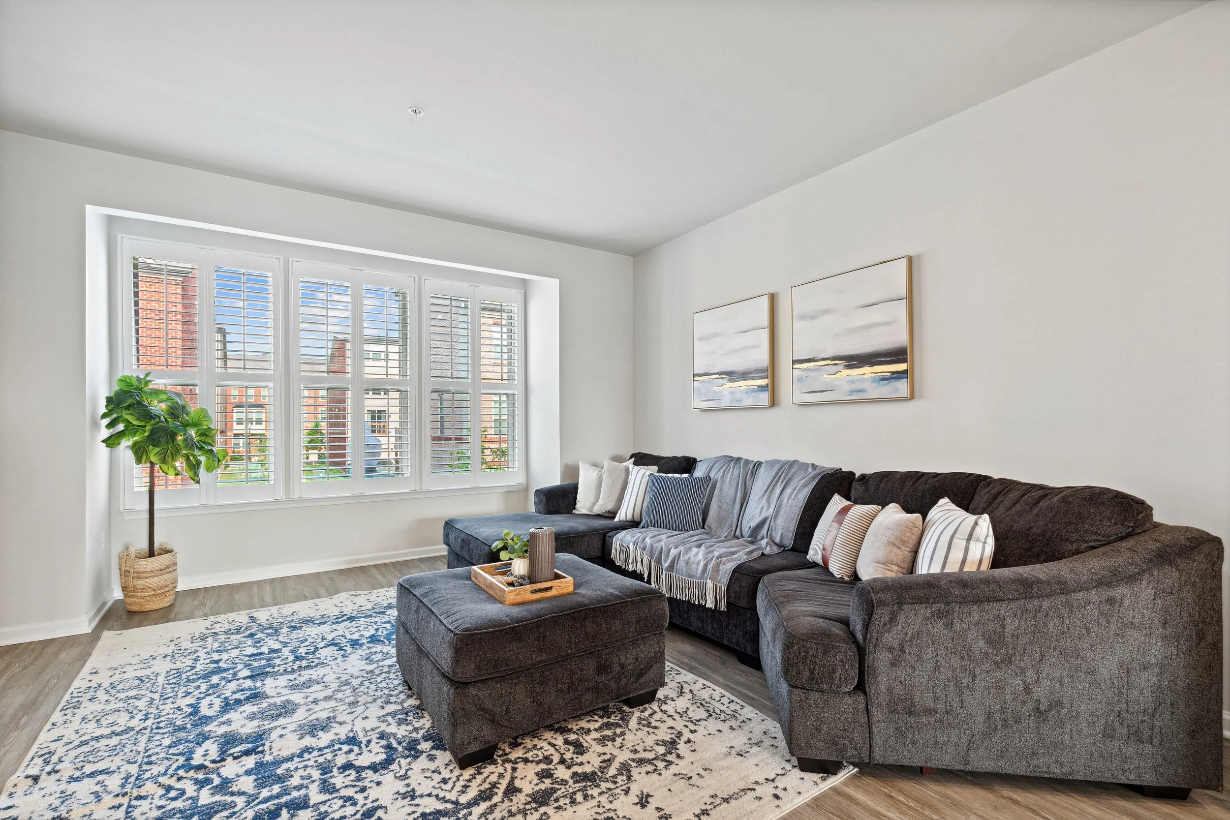 Last summer I photographed a lovely townhome in Baltimore. It has 3 bedrooms, 3.5 bathrooms, and is 2,097 square feet. The front door opens to a cozy living room which can also double as a home office. When you walk up to the main level you are greeted by an open concept living room, kitchen, and dining room. The kitchen is modern and spacious. It has stainless steel appliances, quartz countertops, and dark wooden cabinets. Just off the dining room is a balcony that is perfect for a morning coffee or an evening drink. The third level has two bedrooms and two full bathrooms. The fourth level has a spacious primary bedroom with an en-suite bathroom. Check out some of the photos from my session below.