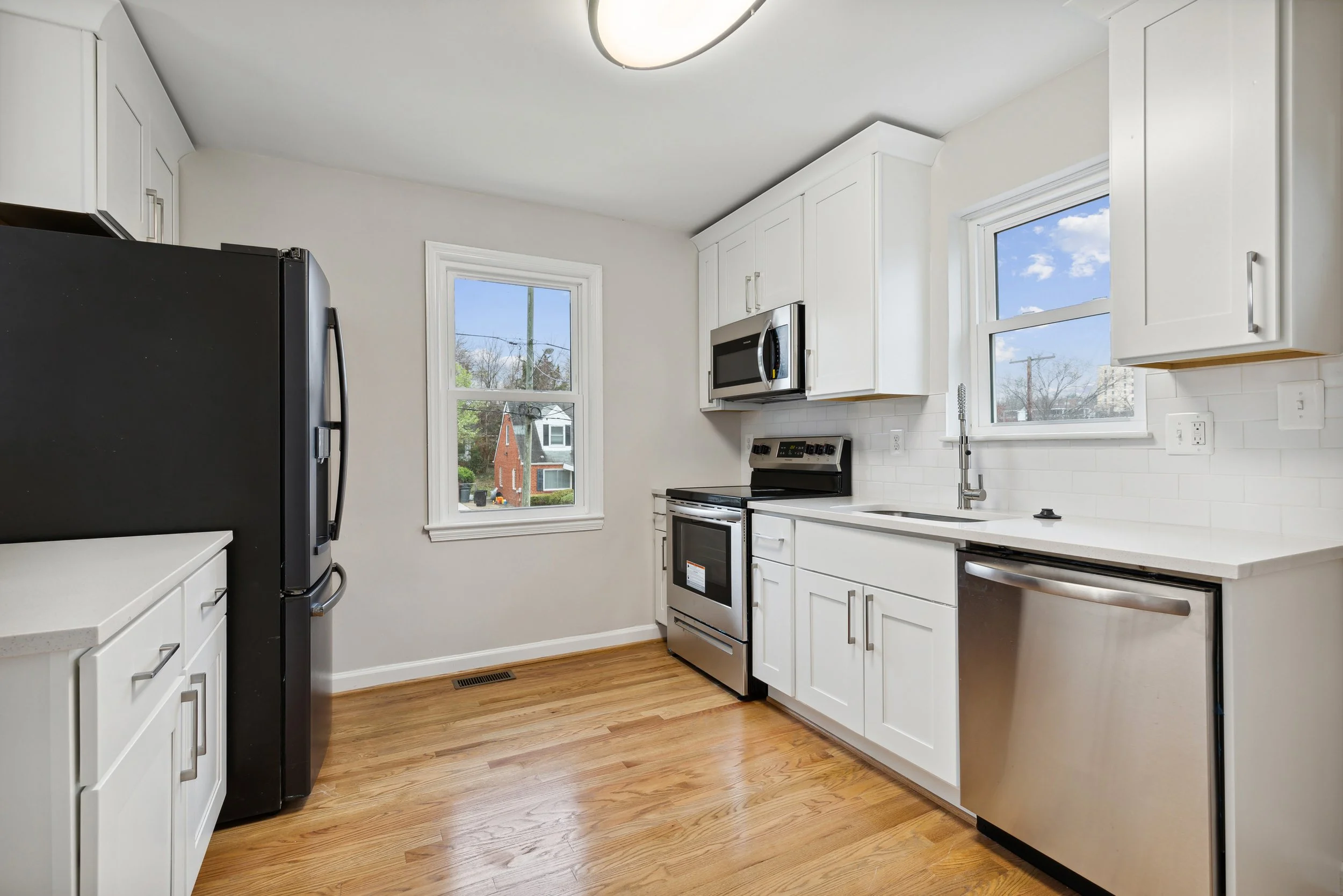 This past spring I photographed a lovely ranch style home in Hyattsville. It has 4 bedrooms, 2 bathrooms and is 1178 square feet. It is completely renovated with new carpets, hardwood floors, new bathrooms, and a renovated kitchen. It has great curb appeal with a large porch. The porch has new wooden railings and is the perfect place to sit and relax. Upon entering the house, there is a beautiful wood burning brick fireplace. It’s perfect for the upcoming cold winter nights. The kitchen is open to the dining room and living room. It includes quartz countertops and brand new stainless steel appliances. The bathrooms are modern and sleek with gorgeous tiling in the shower/tub combination and a soothing gray palette. I absolutely love the basement. It is very spacious and is a great place for entertaining, a home theater, a gym, or all three! Check out some of the photos from my session below.